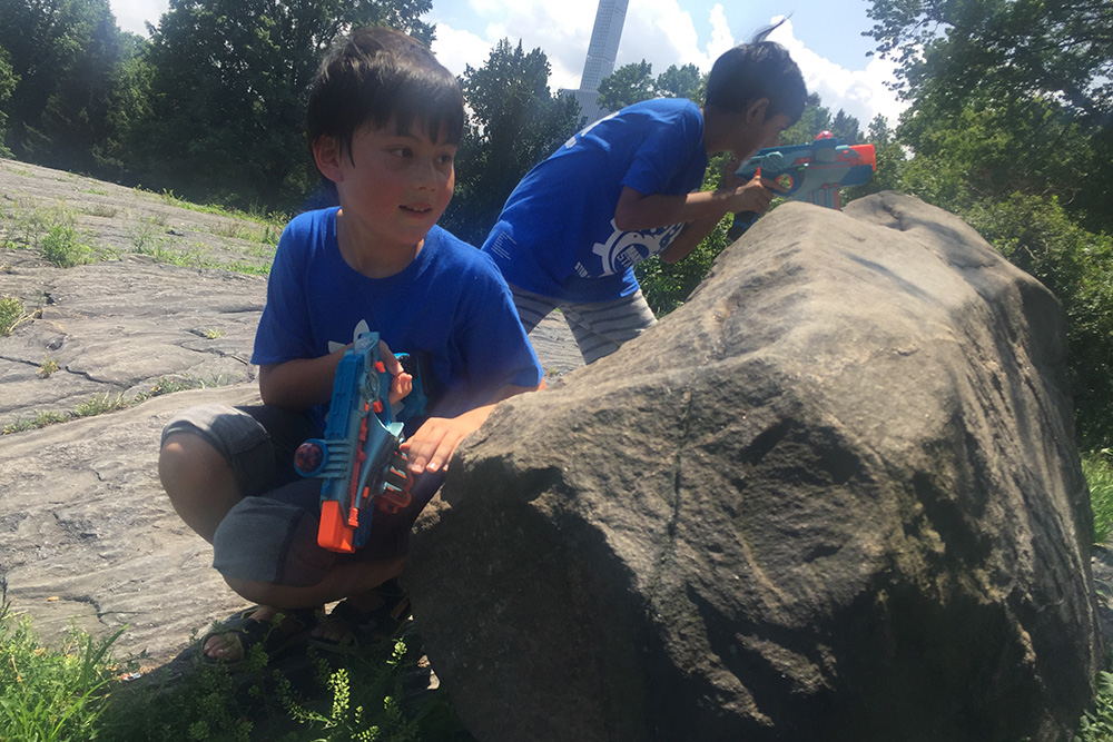 This is a super active outdoor adventure party with a laser taggers for each of your friends and several team-based missions to play such as Capture The Flag, Hide & Seek, Zombie Escape, and Geometry Tag. We transform a special section of Central Park into “The Two Mountains”, headquarters bases which your team must defend at all costs! A play space of your choosing like a school yard or gym may also be used. Kids learn real skills during the game: teamwork, communication for problem solving, collaborative planning, debriefing, and innovation.